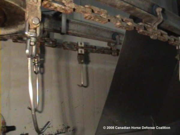 Meat hooks in Natural Valley Farms, horse slaughterplant in Neudorf, Saskatchewan.