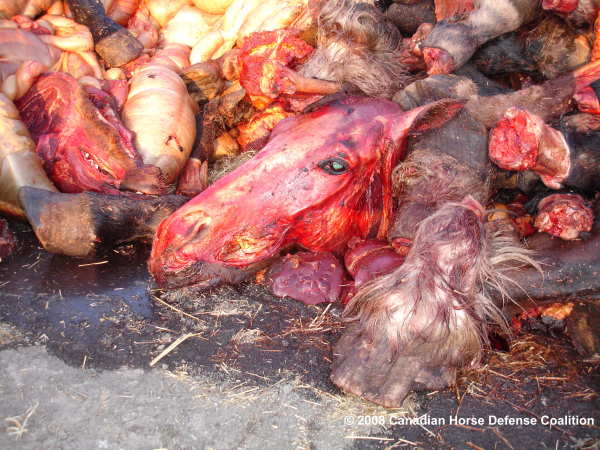 Skinned head and broken hoof in Rendering Pit of Natural Valley Farms horse slaughterhouse in Neudorf, Saskatchewan.