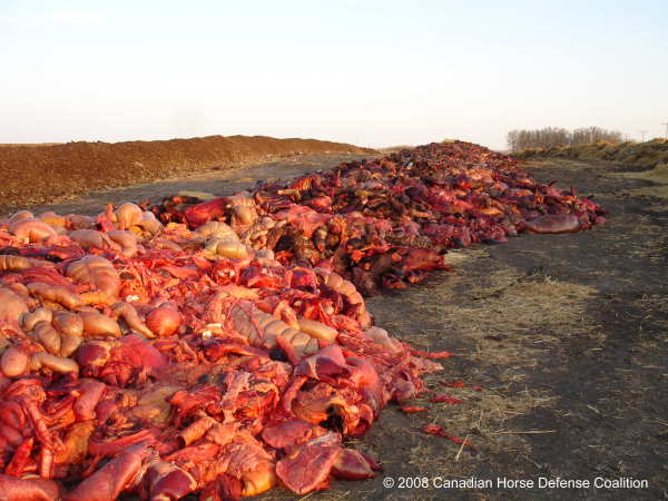 Fully exposed horse heads and internal organs at Natural Valley Farms' rendering pits in Neudorf, Saskatchewan.