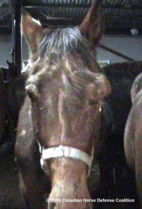 According to CFIA's Compromised Animals Policy this horse should have been immediately euthanized and not transported. At a minimum, the slaughterplant is legally obligated to pen injured horses for their own protection - this was not done in this case.